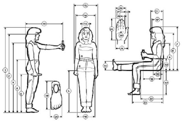 Antropometri bilimi, bireyler veya gruplar arasında, anatomi, coğrafi bölge ve meslek grupları gibi çeşitli faktörlerden kaynaklanan farklılıkları ve benzerlikleri saptayarak daha geniş bir insan kitlesine uygun tasarımlar yapma imkânı sağlar. Bu tasarımlar için belirlediği vücut ölçüleri arasında, vücut hareketsiz ve belirli bir standart pozisyondayken alınan yapısal vücut ölçüleri ve vücut hareket halindeyken alınan fonksiyonel vücut ölçüleri bulunur.