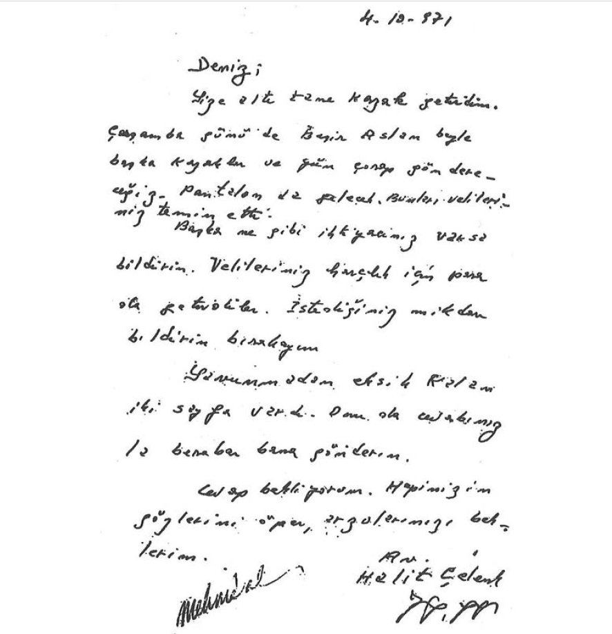BelgelikTHKO Davası Halit Çelenk’in Deniz Gezmiş’e Yazdığı 4.10.1971 Tarihli Mektup ve Deniz Gezmiş’in Halit Çelenk’e Yazdığı Pusula Last updated: Mart 25, 2025 9:49 pm By admin Share 0 Min Read SHARE Halit Çelenk’in Deniz Gezmiş’e Yazdığı 4.10.1971 Tarihli Mektup Deniz Gezmiş’in Halit Çelenk’e Yazdığı Pusula 1. Thko Davasında Yargılanan Deniz Gezmiş ve Arkadaşlarının Ankara 1 Nolu Sıkıyönetim Askeri Mahkemesinde Yaptıkları Savunma Midhat Paşa’nın Anayasa Tasarısı: Kanun-i Cedid Deniz Gezmiş, Yusuf Aslan Ve Sinan Cemgil Tarafından Kaçırılıp Üç Gün Sonra Serbest Bırakılan Dört Amerikalı Askerin Savcılık İfadelerinden Bazı Bölümler Birleşmiş Milletler Yargı Bağımsızlığı Temel İlkeleri TAGGED:deniz gezmişhalit çelenkthko davasi Share This Article Email Copy Link Print Previous Article Resmi Gazete’de Yayınlanan Sağlık Tebliği: İlaç Kullanım Kurallarında Değişiklikler Next Article Yusuf Aslan’ın Babası Beşir Aslan’ın Başbakan Nihat Erim’e Çektiği Telgraf